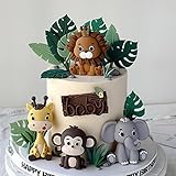 - 🐒🧁【Diseño de Animales Salvajes】Este adornos para tartas selva utiliza imágenes clásicas de animales de la selva, como monos adorables, leones majestuosos, jirafas de cuello largo, etc....