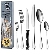 - Juego de Cubiertos 36 Piezas: Cubertería completa para 6 personas. Incluye 6 cuchillos de mesa (22.5cm), 6 cuchillos para carne (21.5cm), 6 tenedores (20.5cm), 6 cucharas (21cm), 6 cucharillas de...
